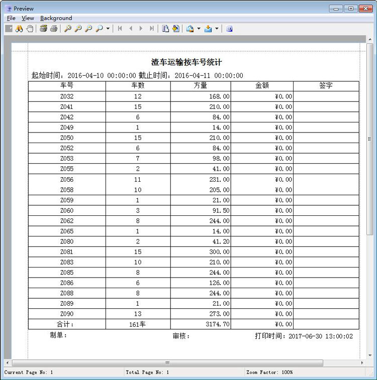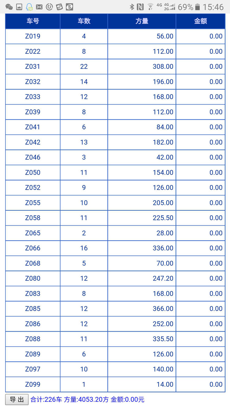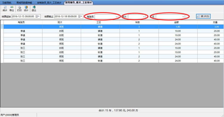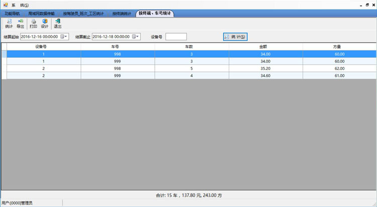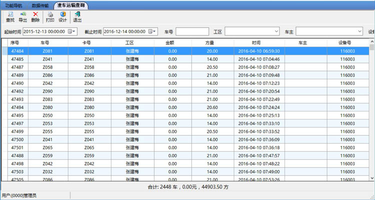 10)系统可进行明细数据查询、按工区统计、按司机编号统计、按物料统计,按设备号统计,按设备号司机编号统计等多种统计报表与报表打印和EXCEL数据表格导出。